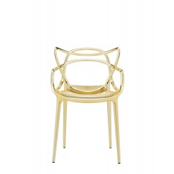 La chaise Masters met à l'honneur trois chaises emblématiques revisitées par le génie créatif de Starck. La « Serie 7 » d'Arne Jacobsen, le fauteuil « Tulip Armchair » d'Eero Saarinen et la « Eiffel Chair » de Charles Eames fondent les silhouettes inimitables dans un objet hybride sinueux qui donnera vie à un mélange de styles originaux et captivants. Légère, pratique et empilable, la Masters peut également être utilisée à l'extérieur. Pour une touche plus précieuse, elle est également disponible dans des finitions métallisées.
