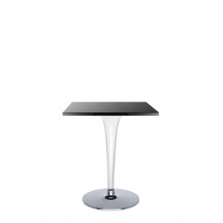 La série des tables TopTop se distingue par son piètement transparent ou non, rond ou carré à facettes, renforcée par une âme en métal.
